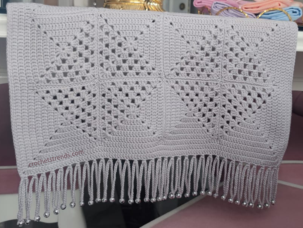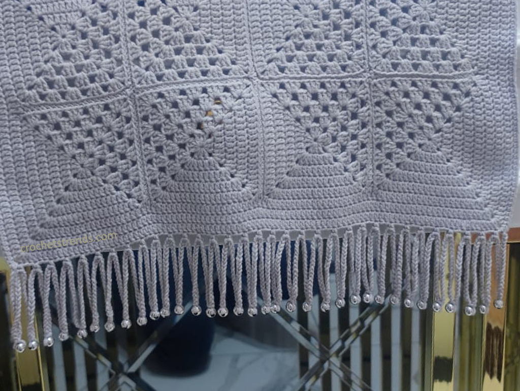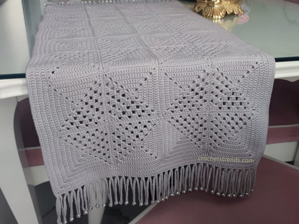 For a touch of elegance, the last row incorporates beaded tassels. This handmade element transforms the runner into a piece of art. Work on the long edges with single crochets and embellish the short edges with beaded tassels. This intricate detailing is what makes your crochet table runner stand out, perfect for festive occasions like Christmas or as a year-round decor piece.