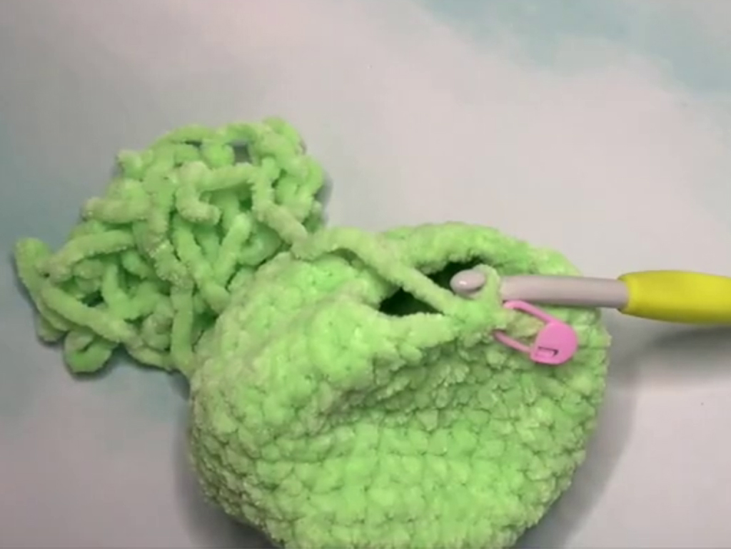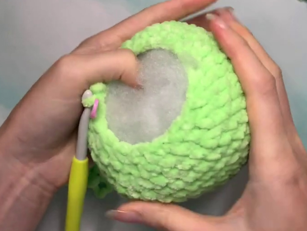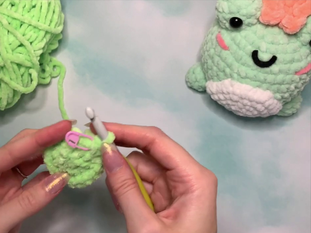 Firstly, you’ll need some basic supplies. Opt for size 6 super bulky yarn in your preferred colors – traditionally green for the body and a contrasting color for the belly and cheek accents. You’ll also require black felt for the mouth, safety eyes, a 3.7-millimeter crochet hook, scissors, a sewing needle, a stitch marker, and fiberfill for stuffing. These materials are easily accessible and perfect for beginner crochet projects.