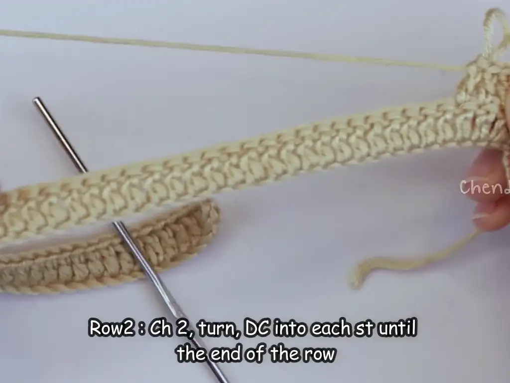 - Double Crochet Row: Turn your chain, skip the first chain, and double crochet in each remaining chain stitch.