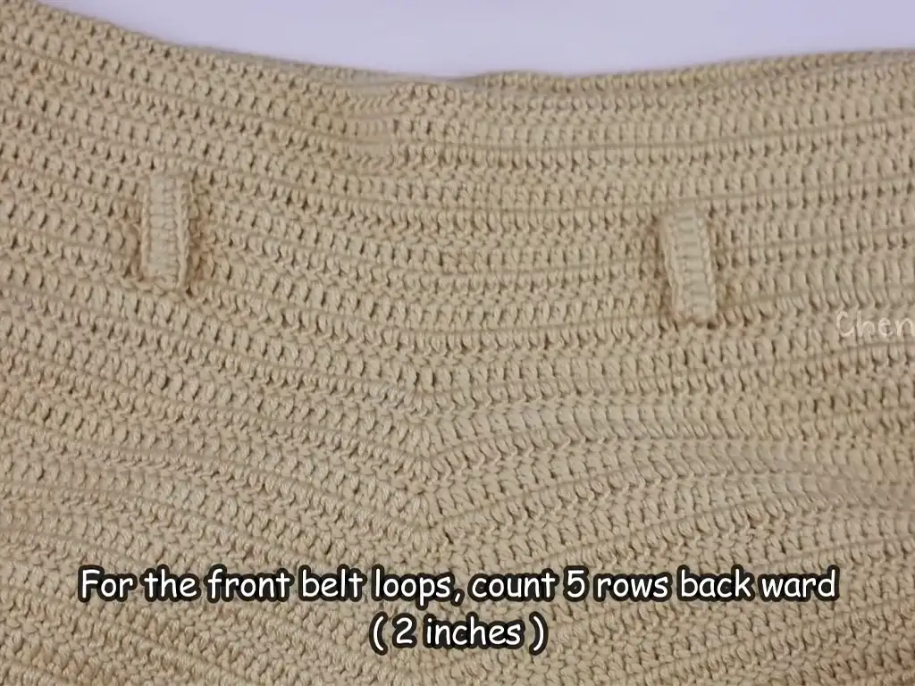 - Belt Loops: With a separate piece of yarn, create a chain long enough to comfortably fit a belt. Attach the chain securely to the back of the waistband using slip stitches. Repeat to create multiple belt loops as desired.