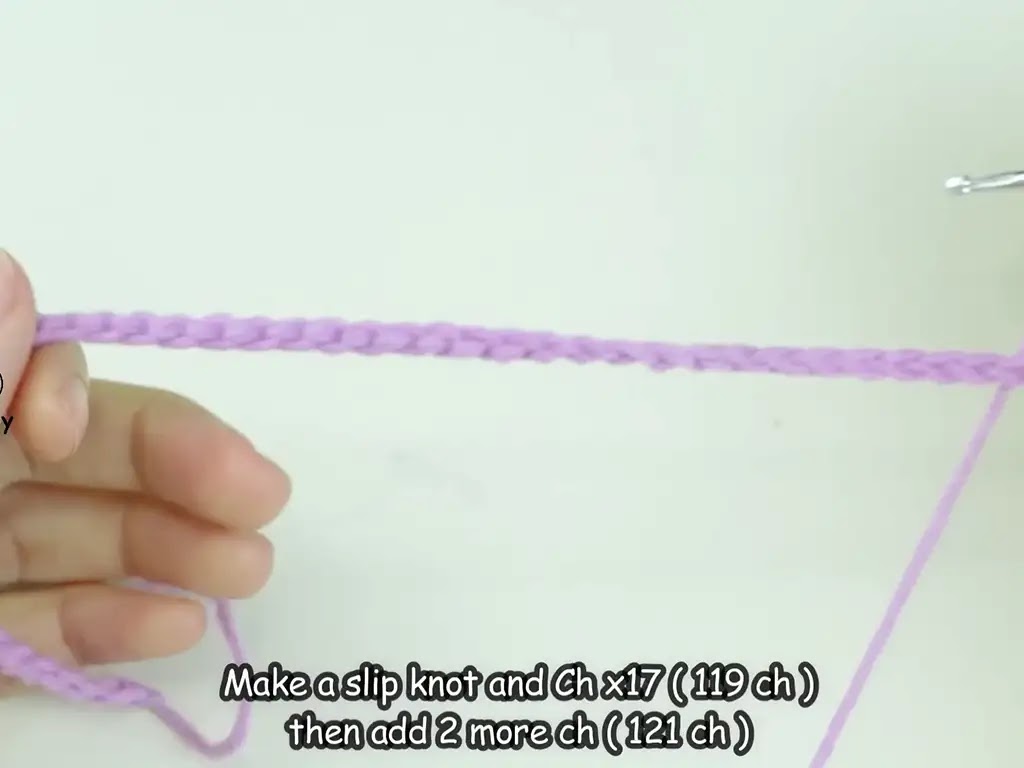 oundation Chain: Chain a multiple of 17 + 2. (For example, 119 + 2 = 121 chains for a small size).