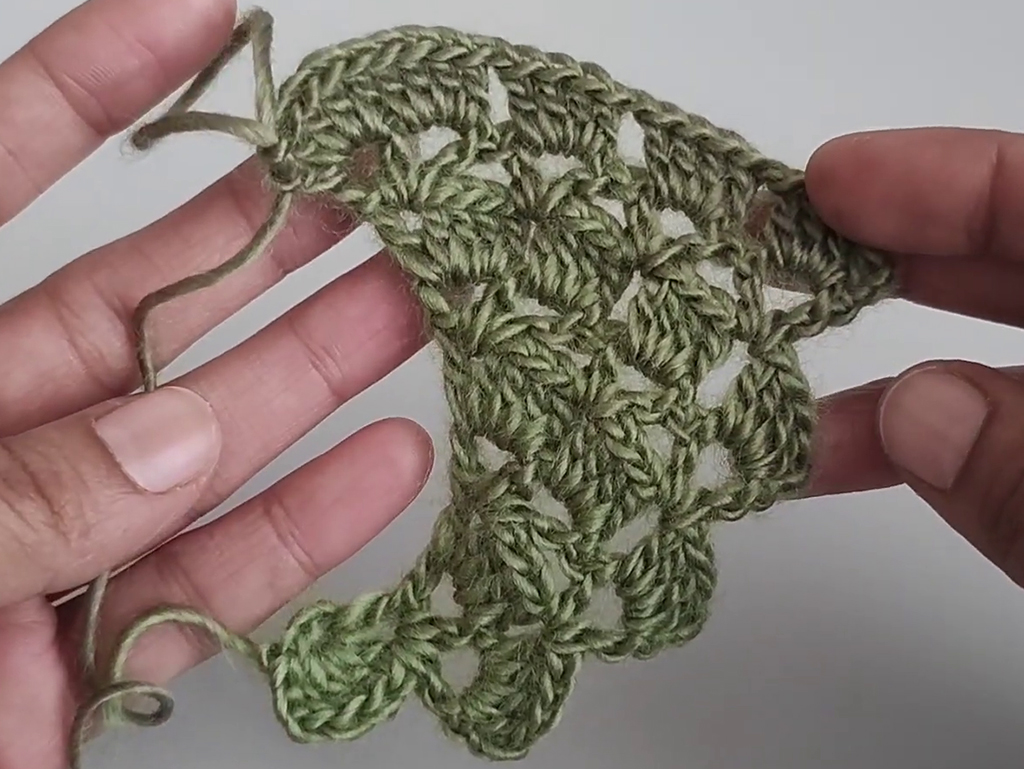 Remember to make increases at the beginning of each row by creating a V stitch in the first space you encounter.