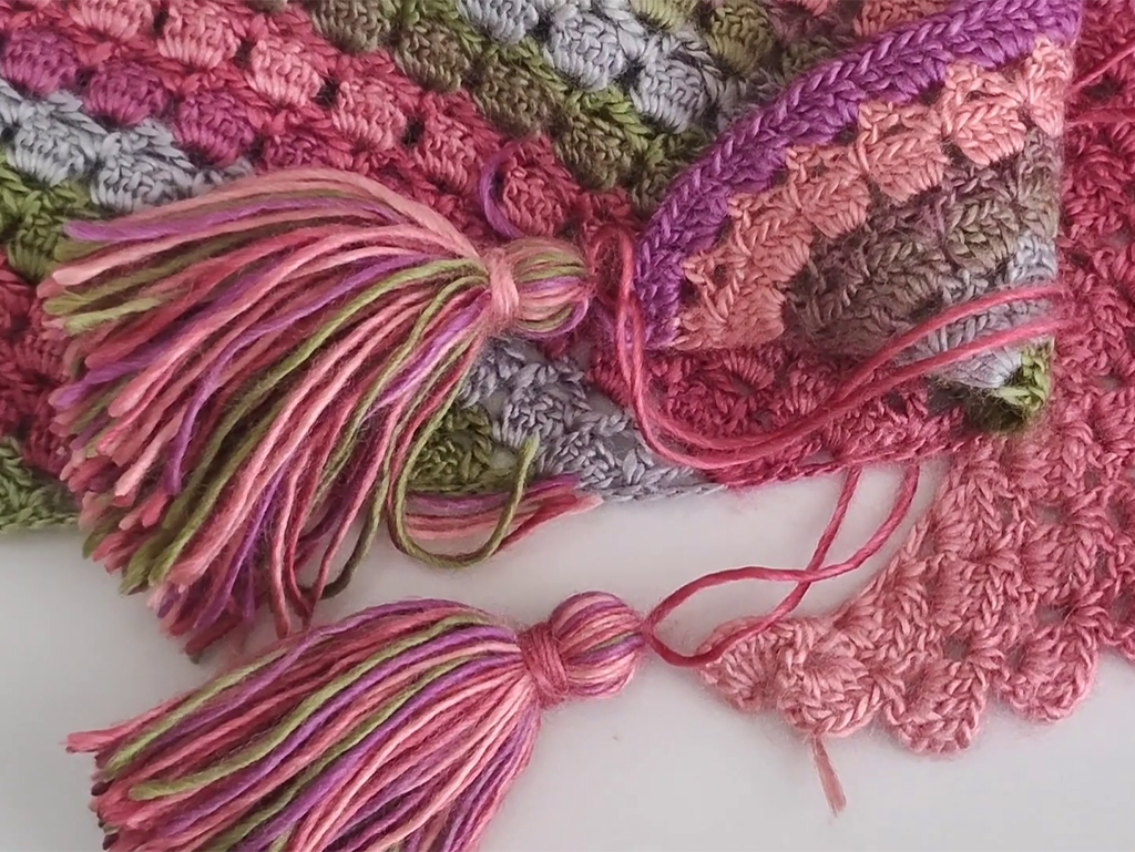 You can add tassels for a decorative touch. Simply attach them at the starting and finishing points of your shawlette.