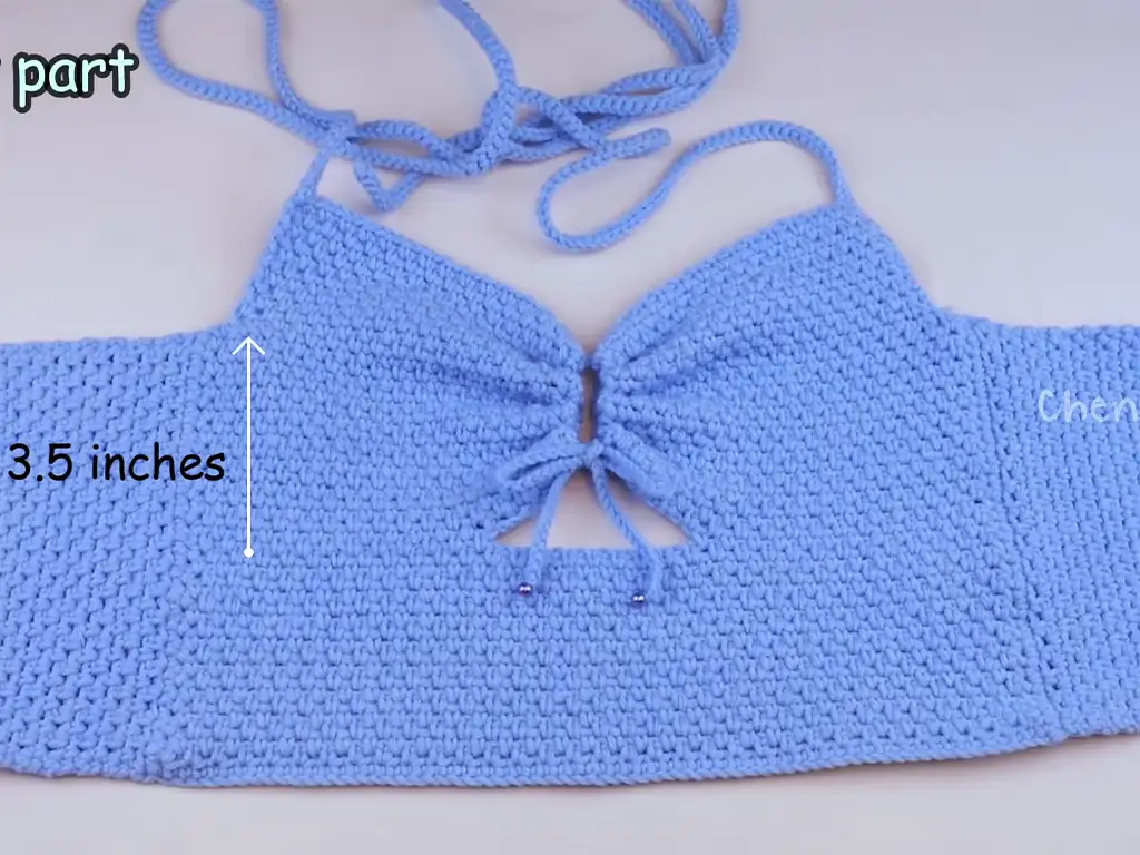 - Once you reach the desired strap height, create long chains for your straps. Finish with slip stitches for a tidy look.