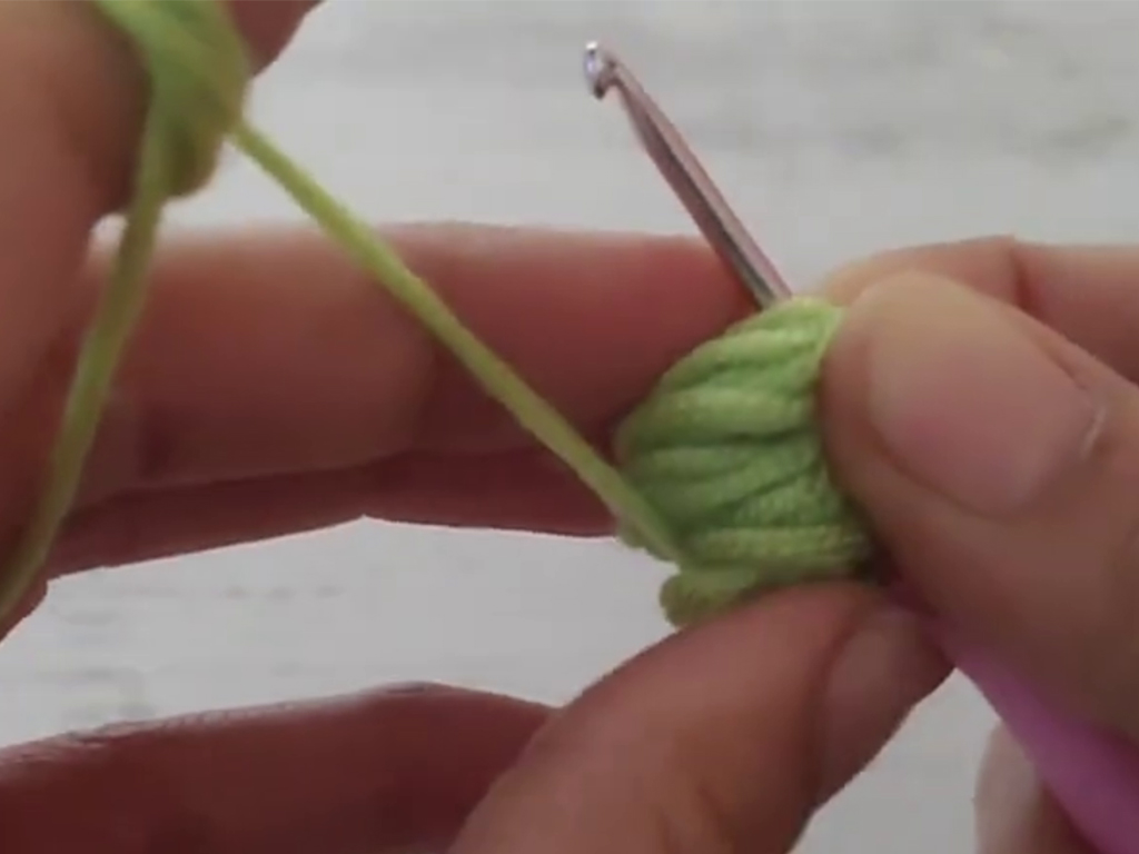 - Loop the yarn around your fingers to create a circle, then pull a loop through with your hook.