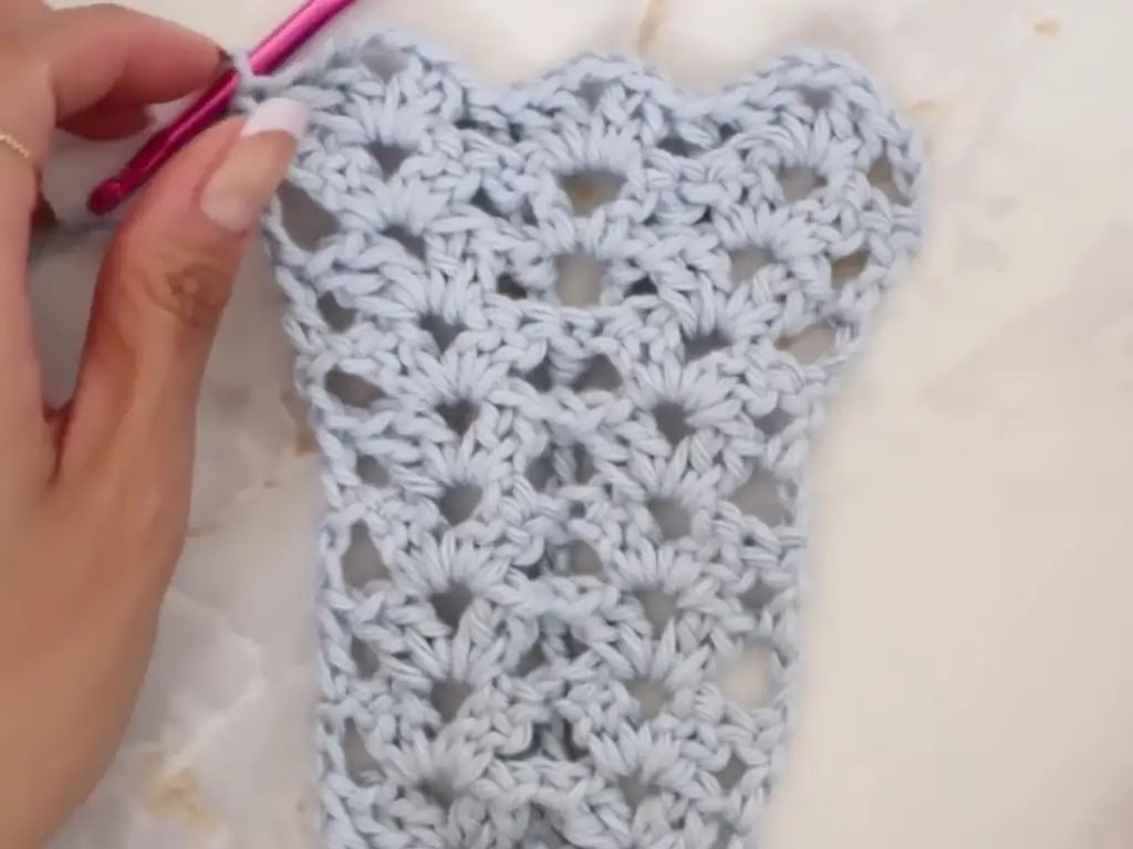 You’ll work increasing rows using the double V-stitch for a gradual, flattering shape. Here’s the breakdown: