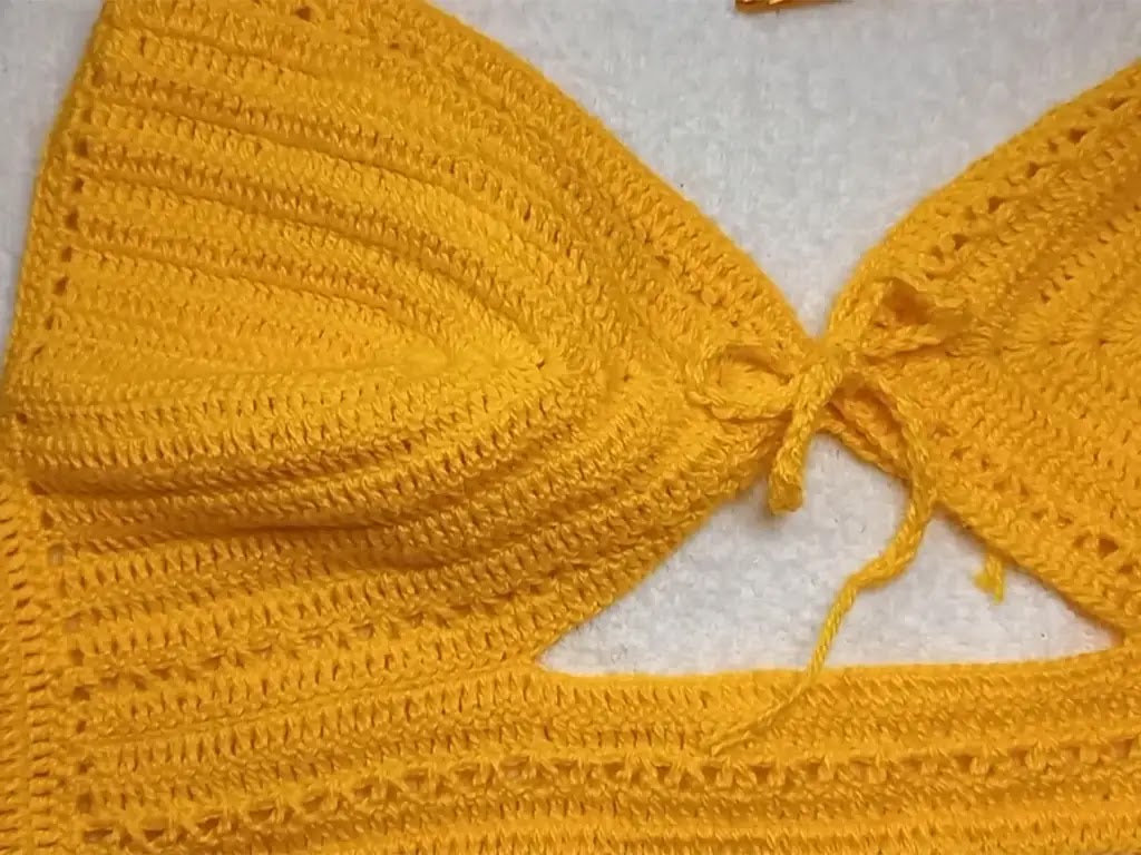 - Create Straps: Attach your yarn to the top corner edge of one cup (near the join you just created). Chain the desired length for your strap (typically 20-30 chains). Fasten off your yarn and weave in the end. Repeat this process on the other side to create the second strap.