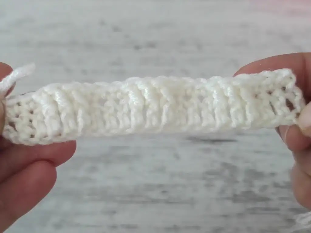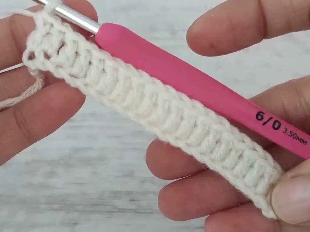 - Row 2: Ch 1, turn your work. Work a single crochet (sc) into each space across.