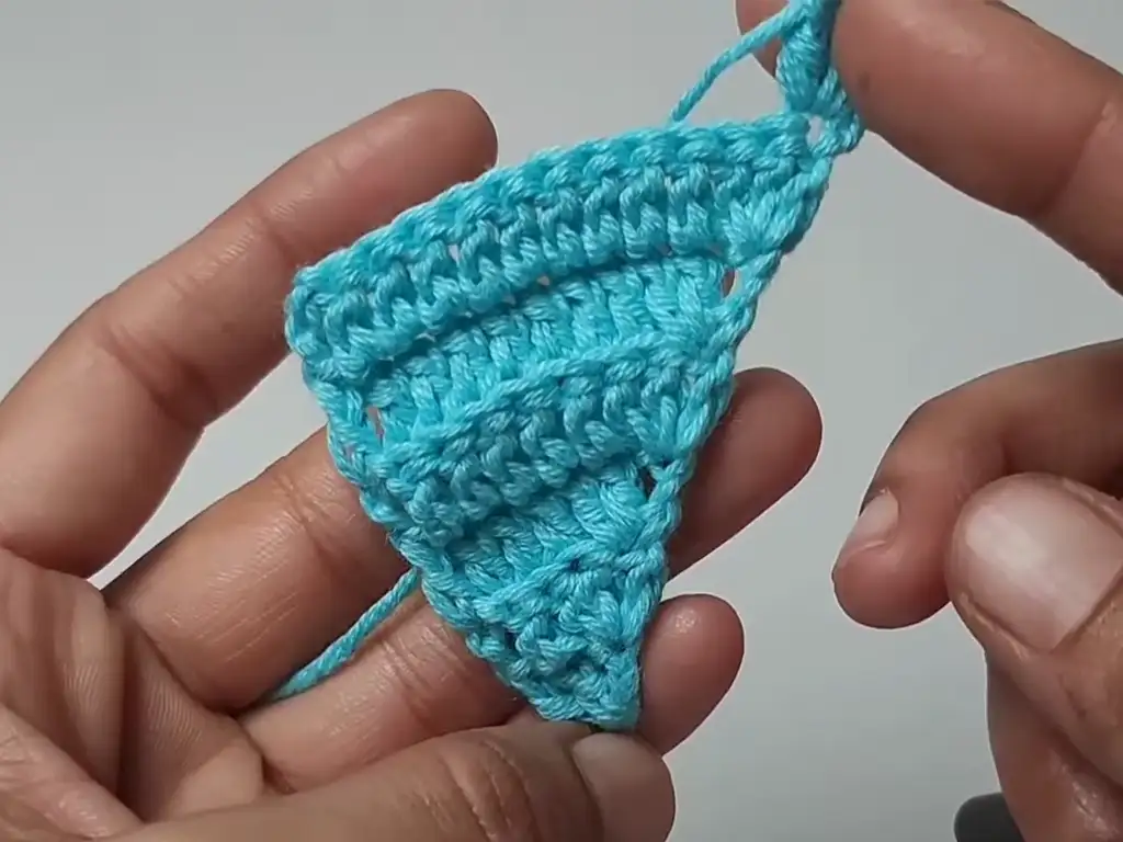 • To increase the rate of shaping for a wider triangle, work 4 dc instead of 3 dc at the top of the turning chain in Row 3 and subsequent increasing rows.