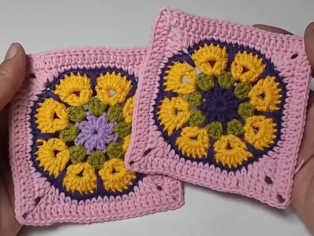 - Follow a detailed video tutorial for crocheting the African Violet square, like this one by @TubaCrochet: [https://www.youtube.com/watch?v=tLlw3c0ON7g]