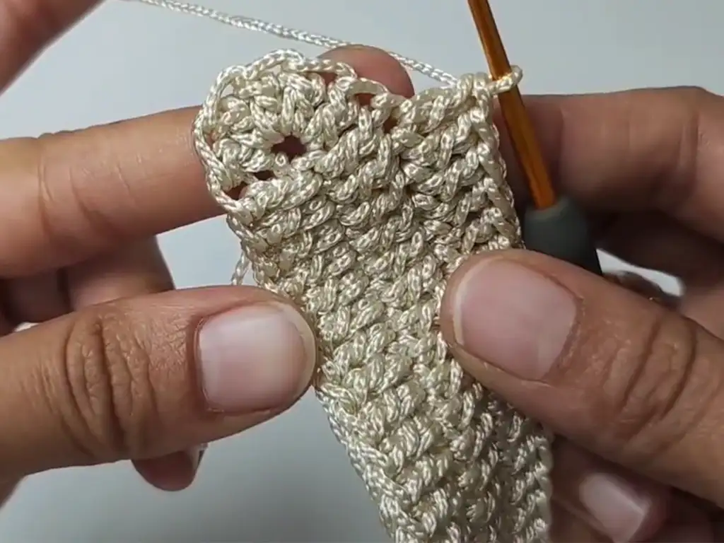 - Single Crochet: Work 5 single crochet stitches in the first chain, then flip the pattern and repeat this process until your handles reach the desired length.