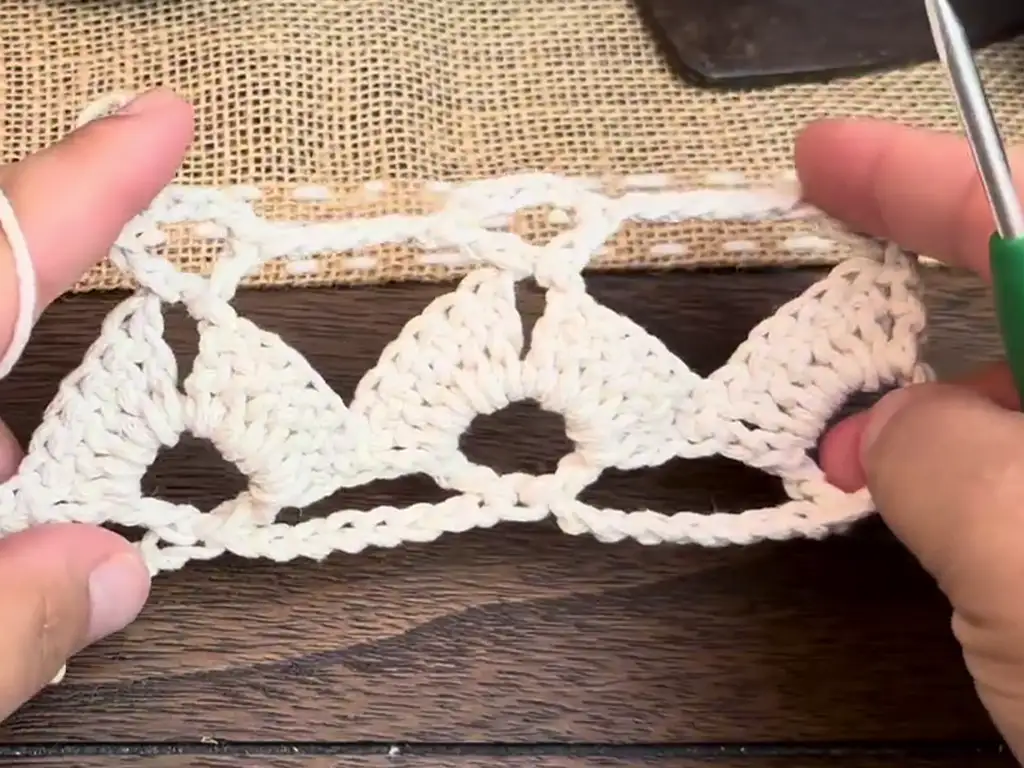 Continue alternating between Row 2 (increase row) and Row 3 (regular row) until your runner reaches the desired length. The increasing rows will create a triangular shape at each end of the runner.