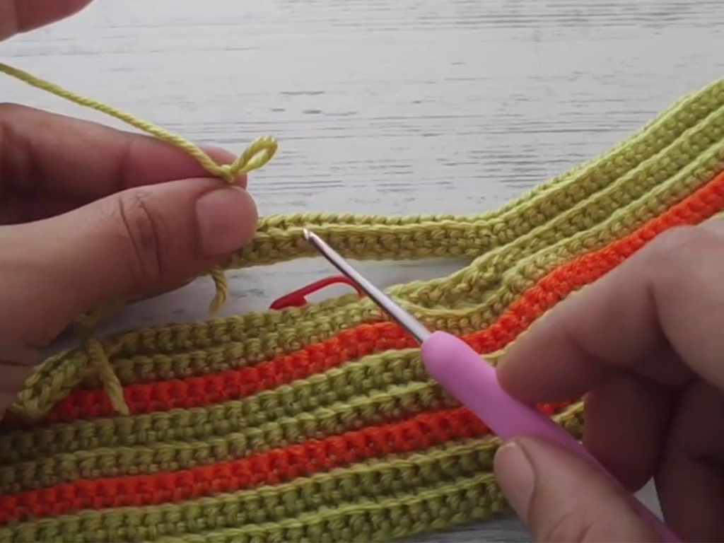 2. Row 1: Start single crochet in the second chain from the hook and continue across the row. Turn your work.