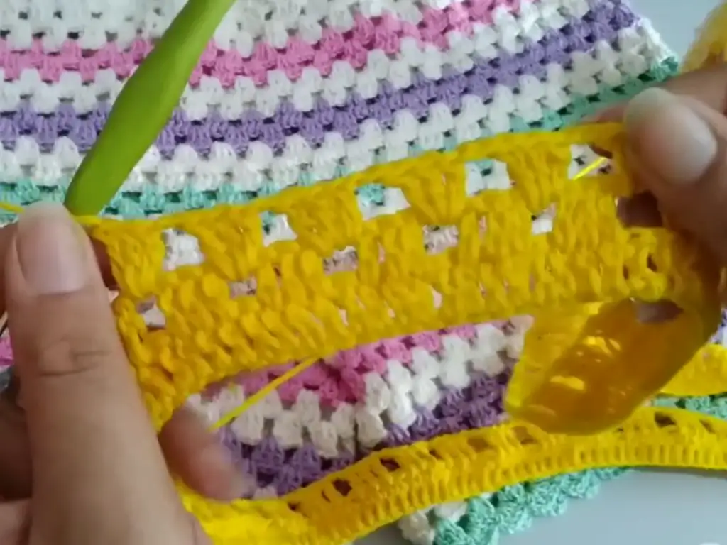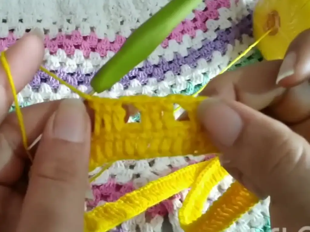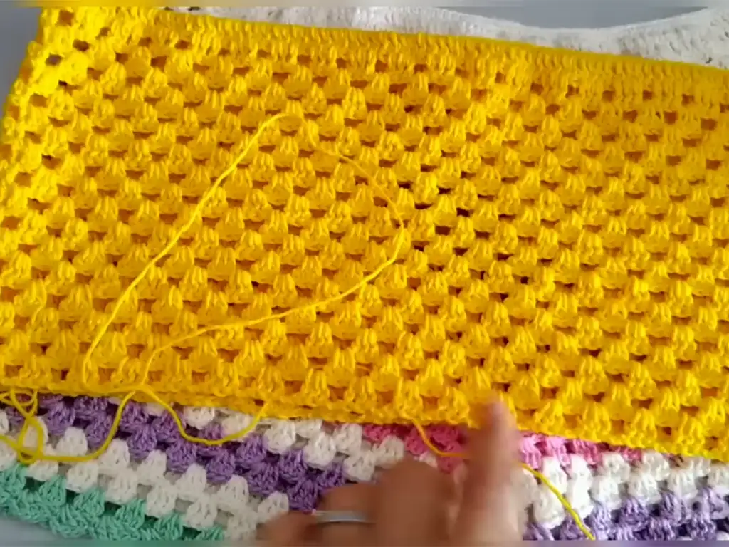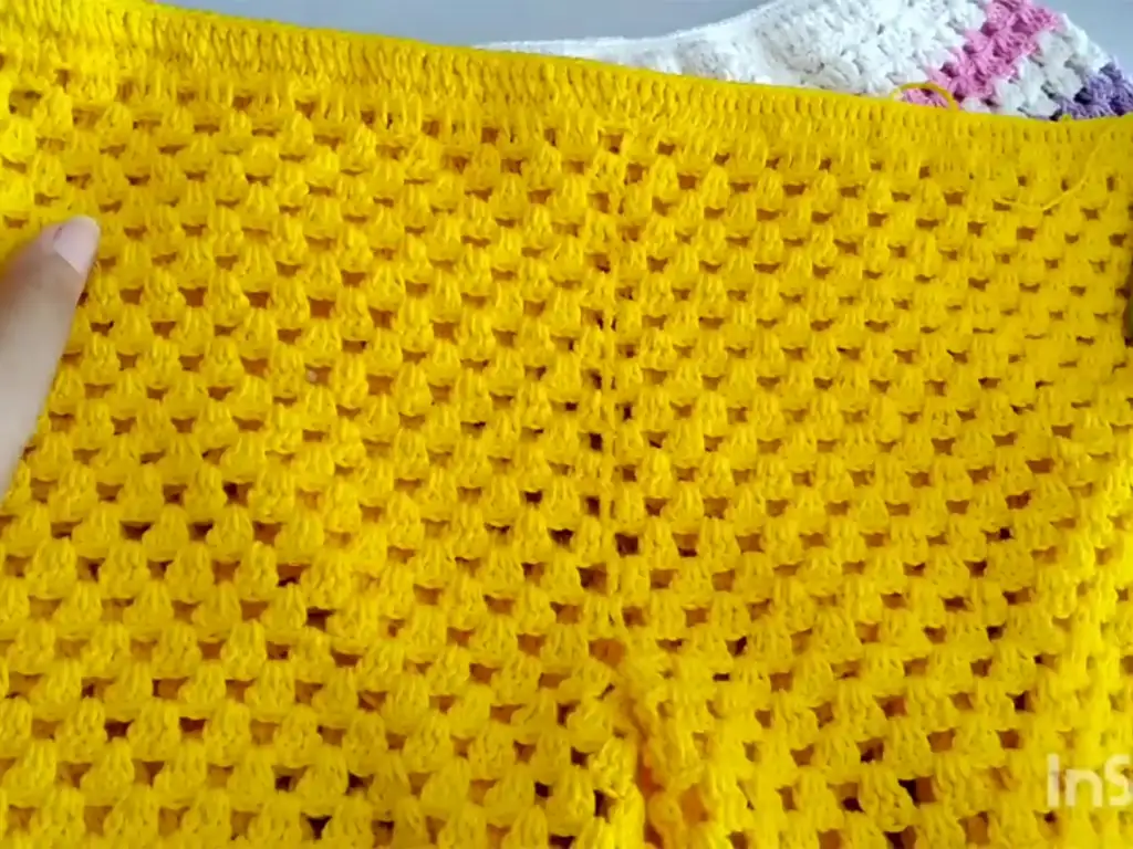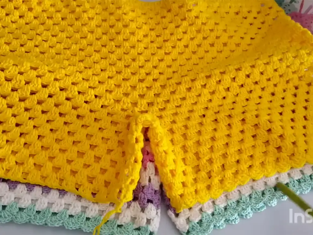 - Continue working rows of the block stitch pattern until you reach the desired length for your shorts. The video tutorial, created by the talented @passoapassodacriart, suggests working 16-17 rows for a size small to medium. Feel free to adjust this based on your measurements and desired length.