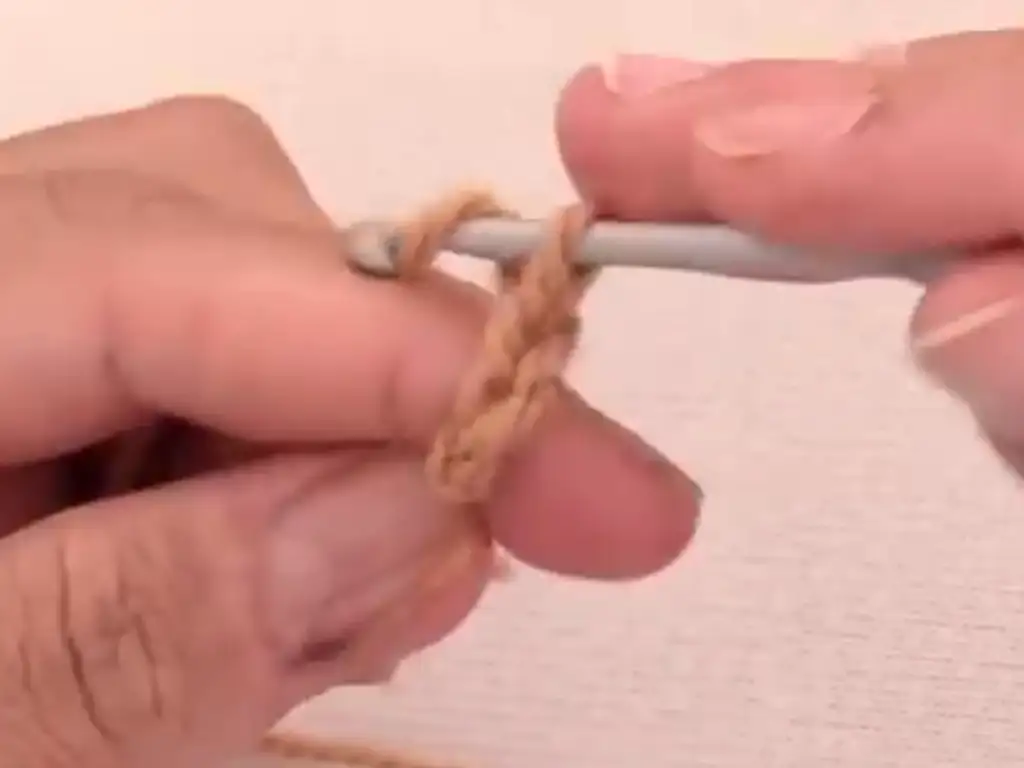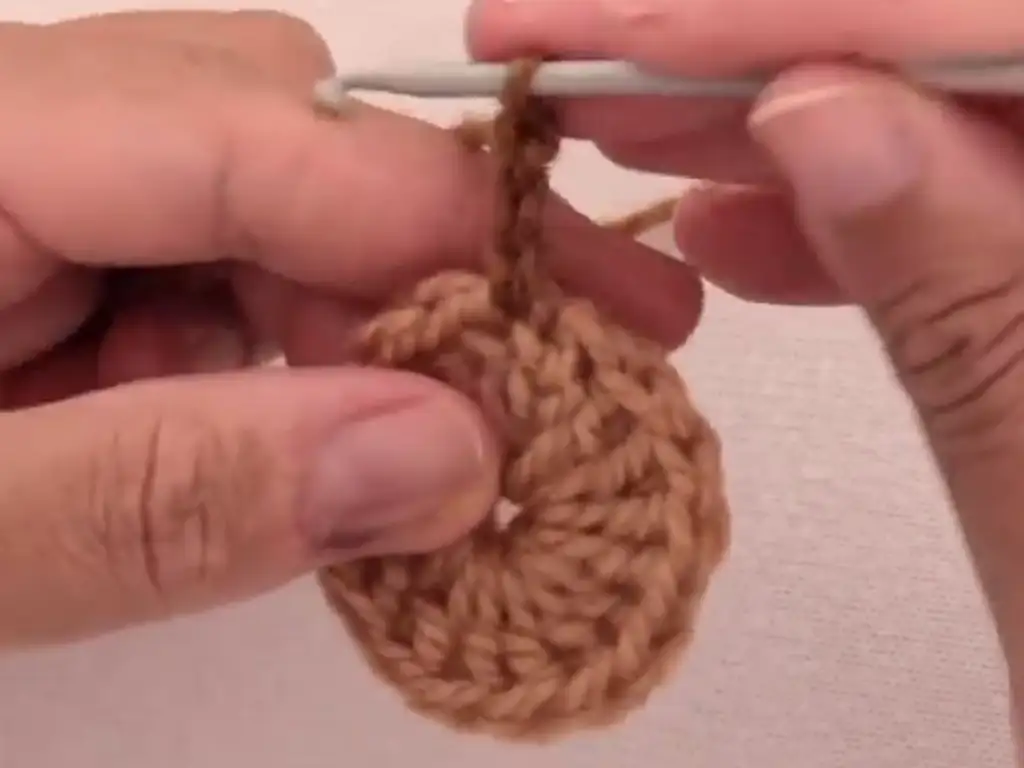 - Change to brown yarn. Chain 5.