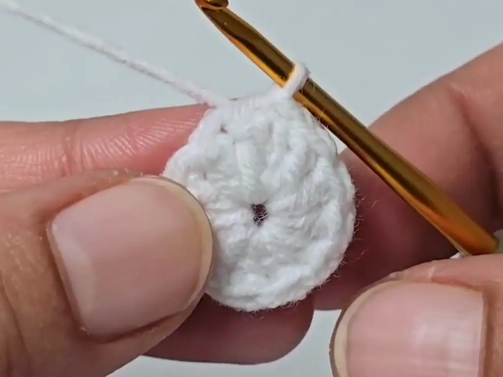 Pull the yarn tail tight. Close the ring. You have 12 double crochets.
