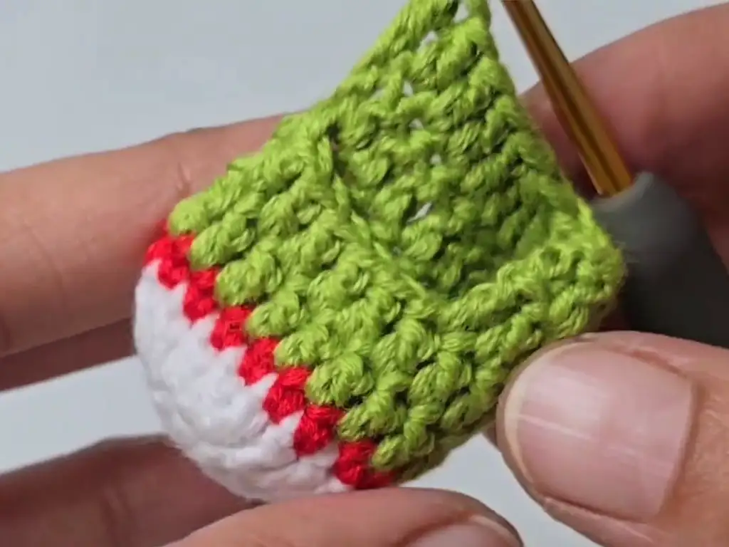 Fasten off the green yarn.