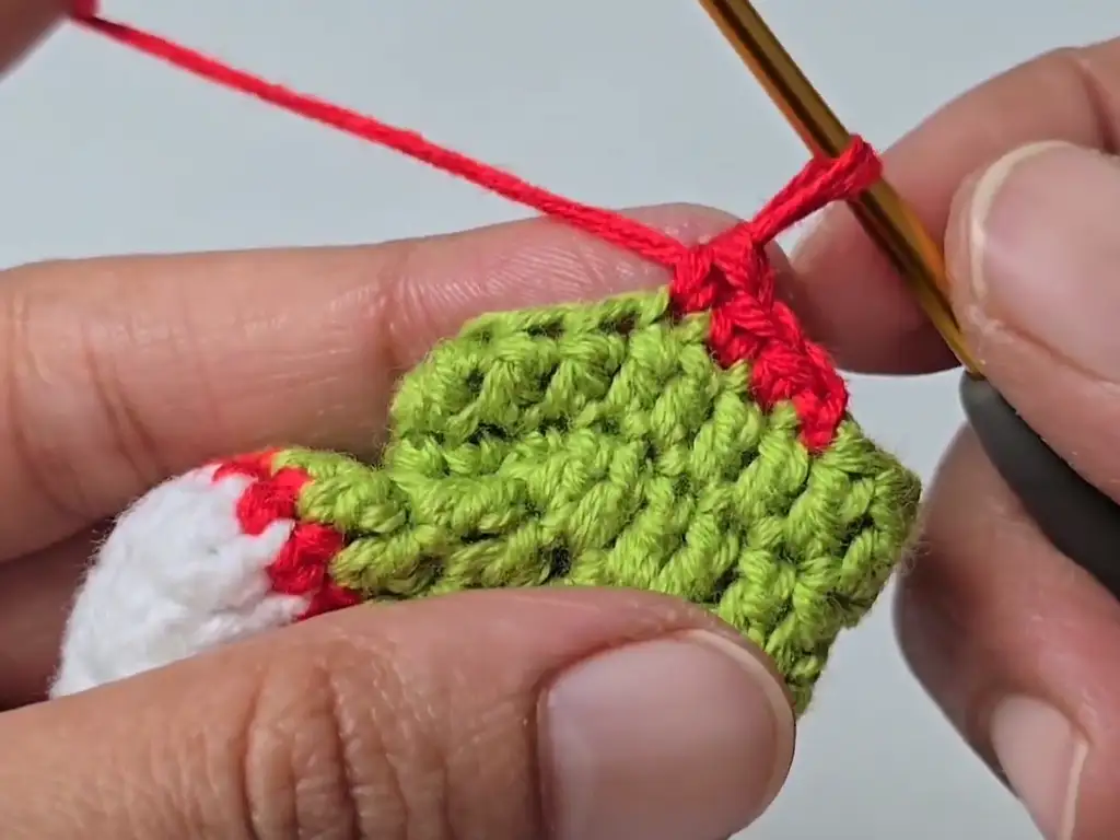 Fasten off the red yarn.