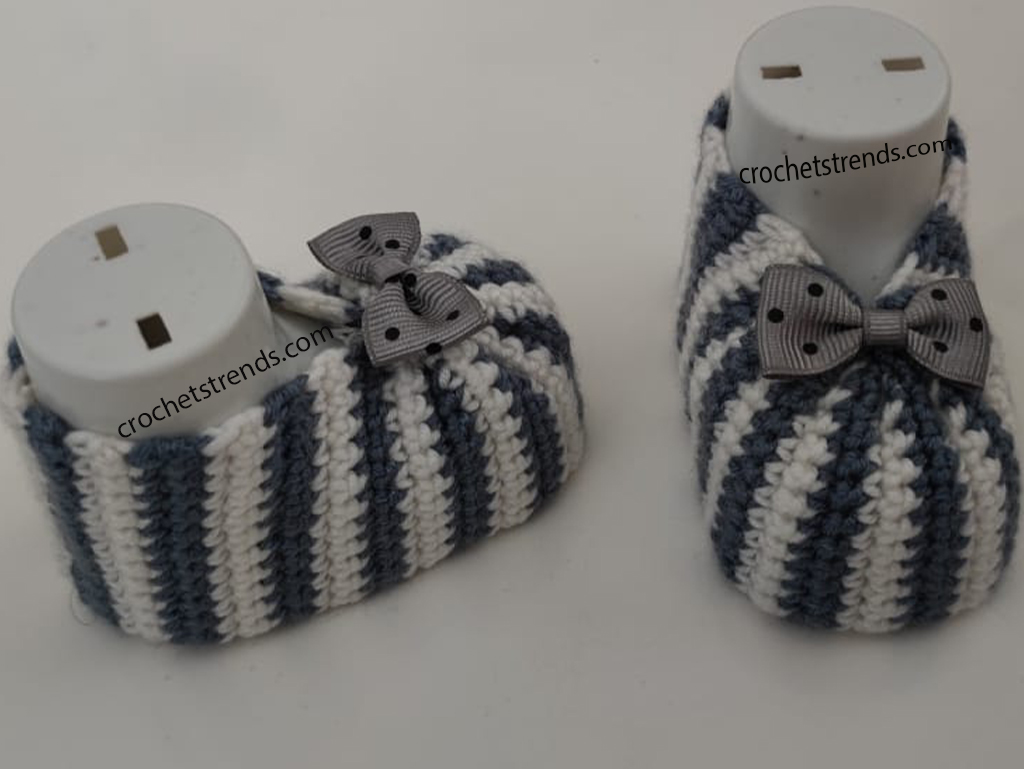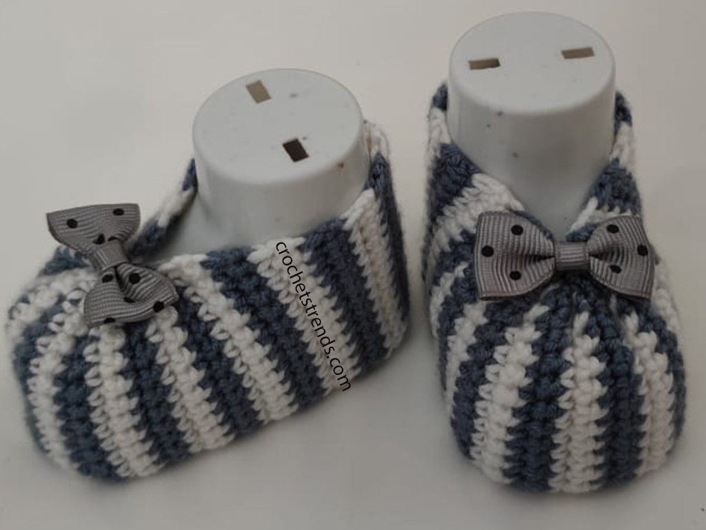 As you progress, introduce color changes every two rows to add vibrancy to your crochet baby shoes design. This pattern creates a visually appealing texture, making each pair unique. The key is to ensure symmetry and not finish with the color you started with, adding an element of surprise to the crochet baby shoes pattern.