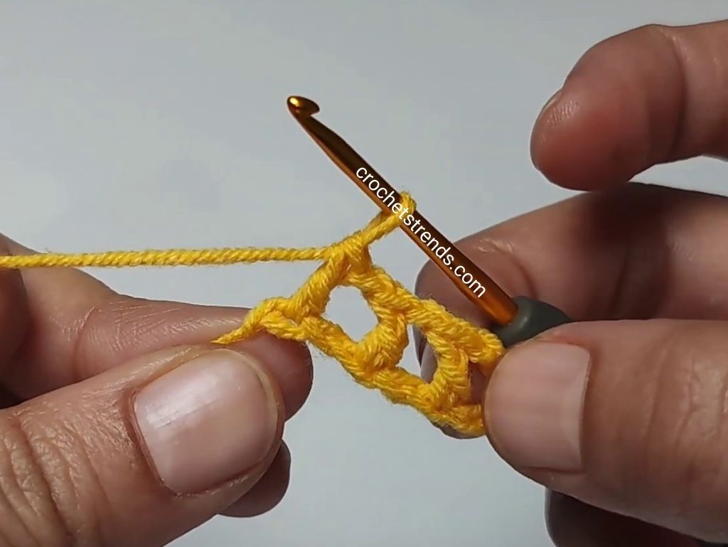 - Continuing Row 1: Chain 1, skip 1 space, then double crochet into the next. Repeat this pattern until you reach the end of the row.